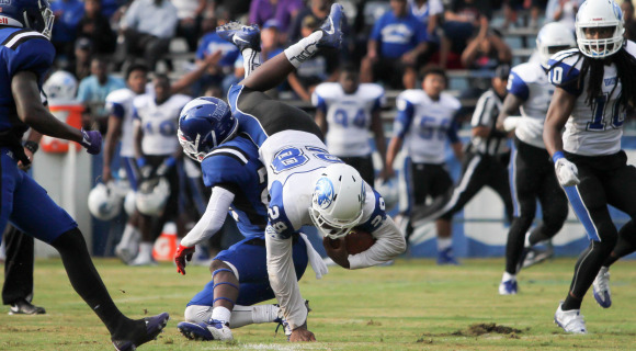 The defense played its part throughout the game forcing four fumbles and recovering two. Keyante Baldwin (Fayetteville, NC) recovered the Hawks’ last fumble of the game on an attempted punt return on Chowan’s three-yard line. Fayetteville State capitalized on the turnover as Banner plunged into the end zone from one-yard out.