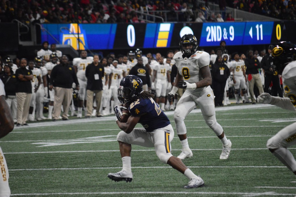 ATLANTA–It was a lot of defense early and some exciting offense late but North Carolina A&T (12-0) held on to win the 2017 Celebration Bowl, earning the title of HBCU National Champions by beating Grambling State University (11-2) with a 21-14 victory. The victory also sealed an unbeaten season for the Aggies, their first ever as members of the MEAC.