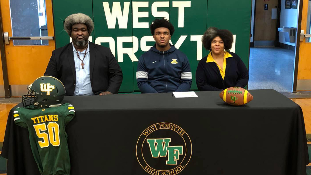 Isaiah Brooks signed his letter of intent to play at A&T on Thursday. Brooks is a 6’5, 300 pound offensive tackle, rated three stars by 247Sports, who received interest from ACC and SEC schools along with an FBS offer before choosing to go to his parents alma mater.