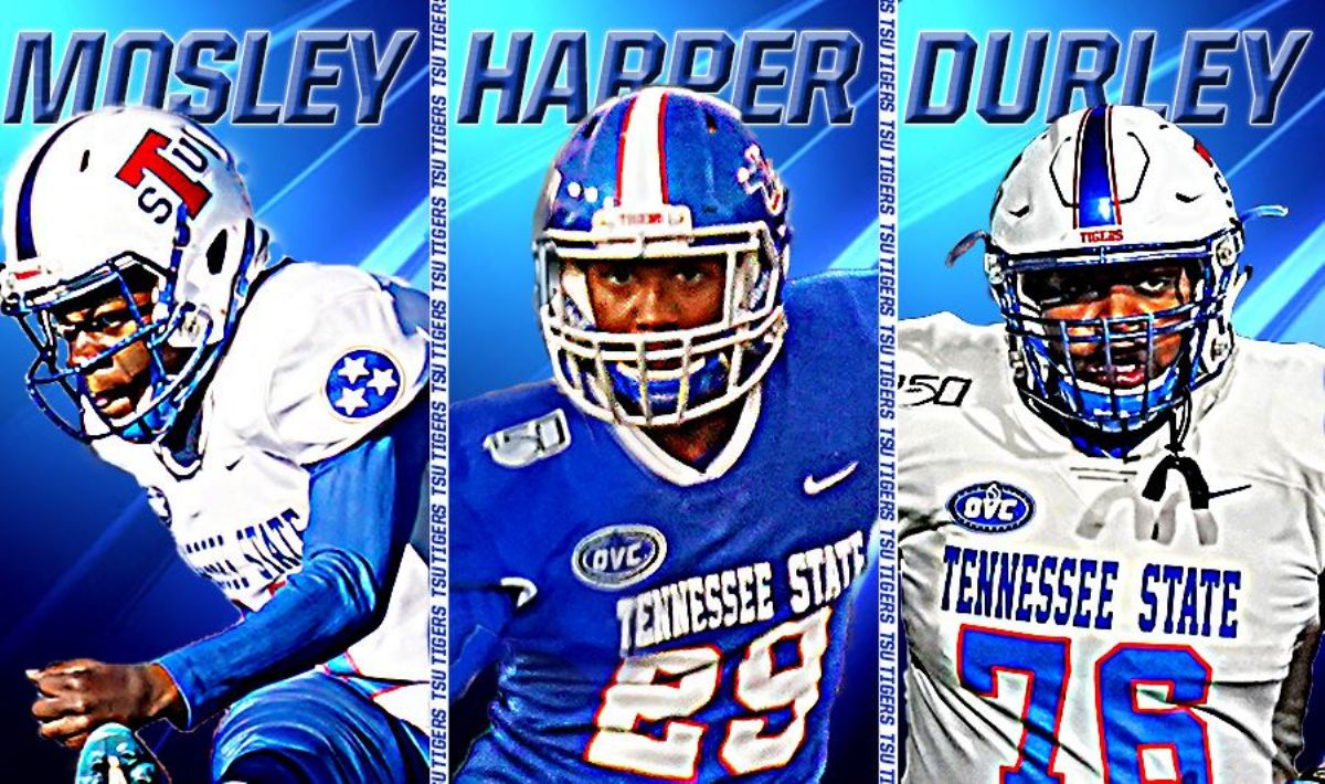 NASHVILLE — Tennessee State placed three players on the Preseason All-OVC (Ohio Valley Conference) Team, as announced on Monday. Redshirt-senior cornerback Nick Harper, Jr., was honored along with redshirt-senior offensive lineman Cam Durley and junior punter Kaleb Mosley.