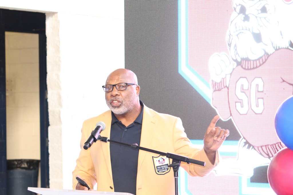 At 10 a.m., Bulldog fans celebrated newly minted Pro Football Hall of Famer Donnie Shell at a brunch. Athletics Director Stacy Danley, Interim President Alexander Conyers, Head Coach Emeritus Willie Jeffries and a host of loyal Bulldogs feted Shell who starred for the Bulldogs before a 14-year NFL career with the Pittsburgh Steelers. Shell was a part of four Steeler Super Bowl-winning teams.