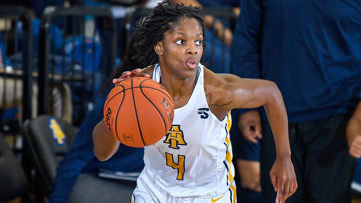 The Aggies responded with a 13-2 run, and the Pirates never recovered. Jordyn Dorsey (Augusta, Ga.) started the run by taking a pass from Jasmen Walton (Baltimore, Md.) and netting a 3-pointer. Walton then found post player Jazmin Harris(McLeansville, N.C.) in the paint for an easy score. A McNeill steal and bucket increased A&T’s lead to nine before Dorsey found Kiana Adderton (Myrtle Beach, S.C.) in the paint for another easy score and a 51-40 lead.