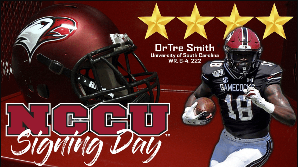 DURHAM, N.C. — University of South Carolina transfer OrTre Smith, a four-star prospect rated as the No. 1 player in South Carolina and the 15th-best wide receiver in the country in the class of 2017, headlines North Carolina Central University’s 2022 football recruiting class, announced by head coach Trei Oliver on Wednesday.