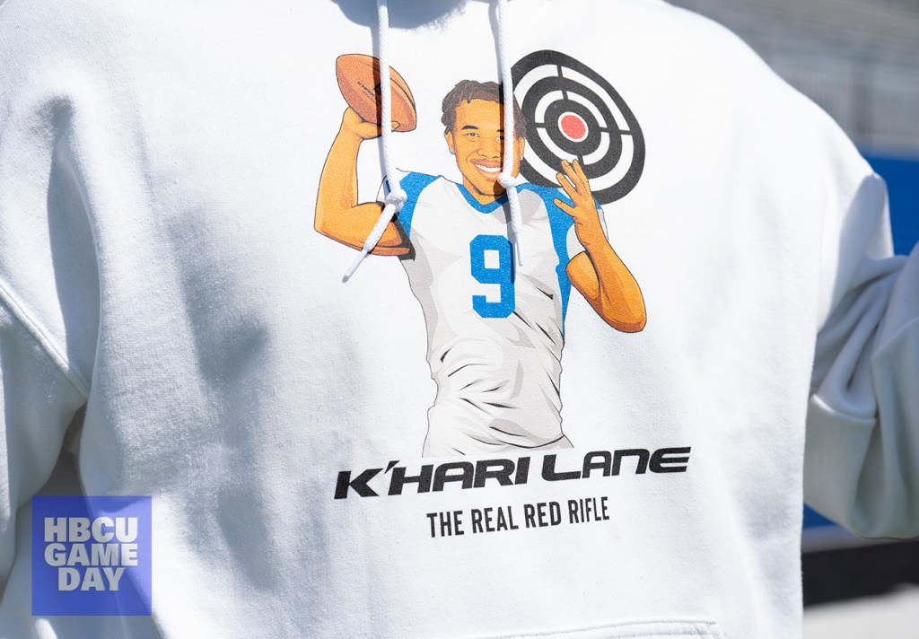 Lane walked into the interview wearing a white hoodie with an animated version of himself throwing the ball. Assuming this was NIL related, we asked him to expound on what his brand was about. The answer was bigger than K’Hari Lane.