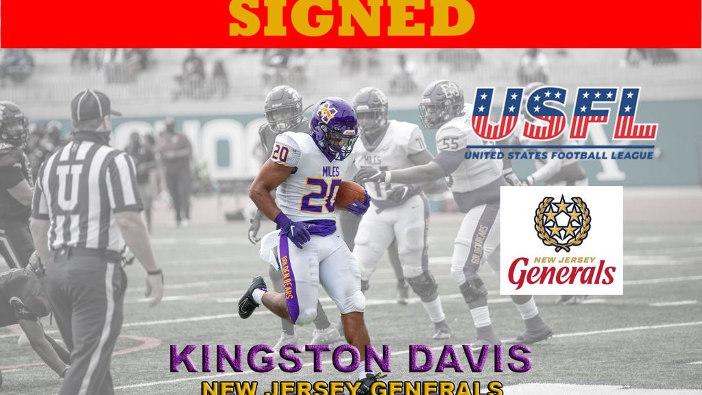 Former Miles student-athlete Kingston Davis has signed a contract with the New Jersey Generals of the USFL (United States Football League.) He is scheduled to begin practice with the team this week.