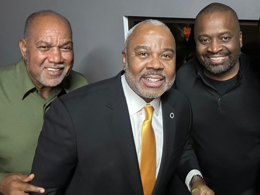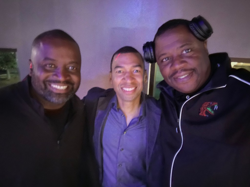 Enjoying the pre game I-10/I-85 Alabama State/FAMU Alumni party from left: ASU VP Col. (Ret) Gregory Clark, Montgomery Mayor Steven Reed and FAMU alum DJ Ace.