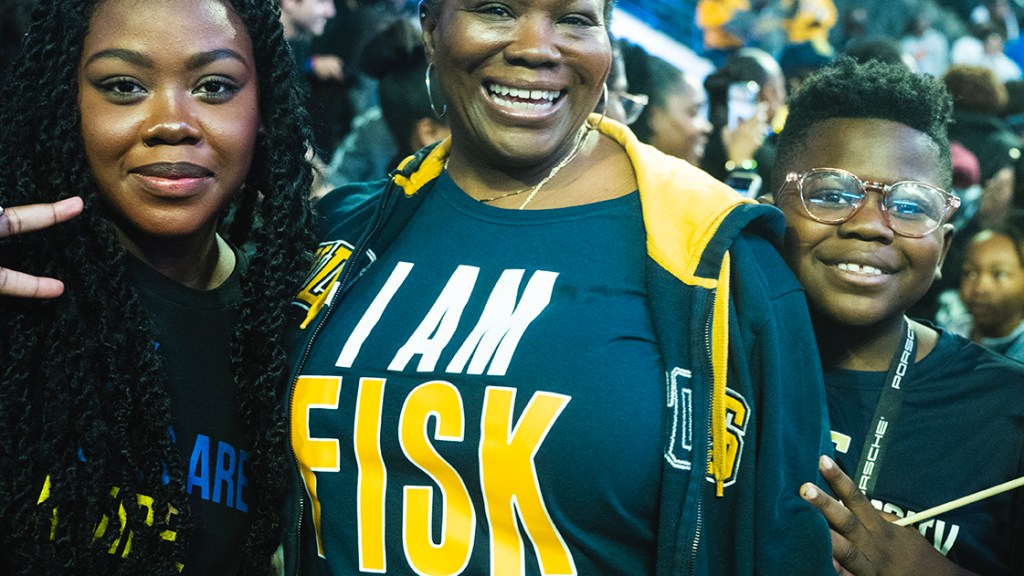 “We’re here to support HBCUs, so we’re here to support Fisk University,” she said, taking off her gold jacket. “Provided we can find a ticket.”