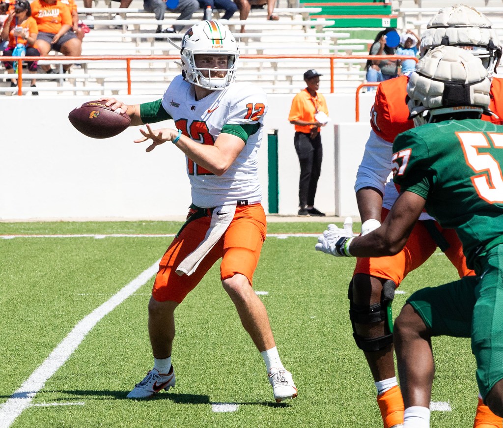 FAMU held its annual Orange & Green Game Saturday at Bragg Memorial Stadium in front of a crowd of thousands (no official attendance released). FAMU starting quarterback Jeremy Moussa weaved his way to the endzone from three yards out to seal the win for the green team in overtime, playing with the SWAC overtime format. Green would edge out an 11-9 win over the Orange squad.