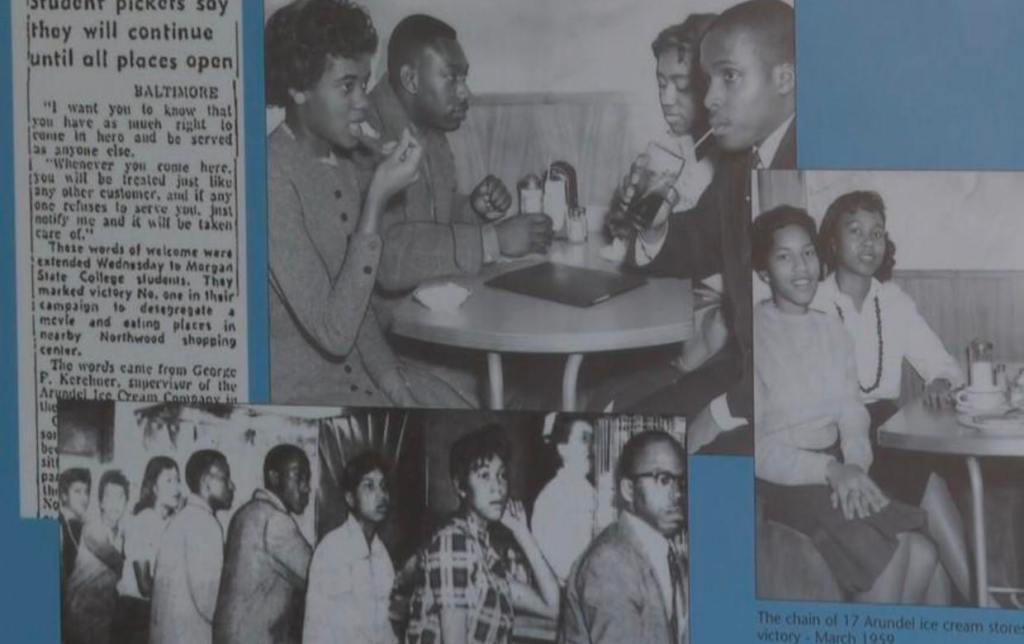 Despite the wall, students continued to stand and fight for civil rights in the 1960s. In 1955 Morgan State students held the first anti-segregation sit-ins at Read’s Drugstore in Northwood Shopping Center, which is right across the wall.