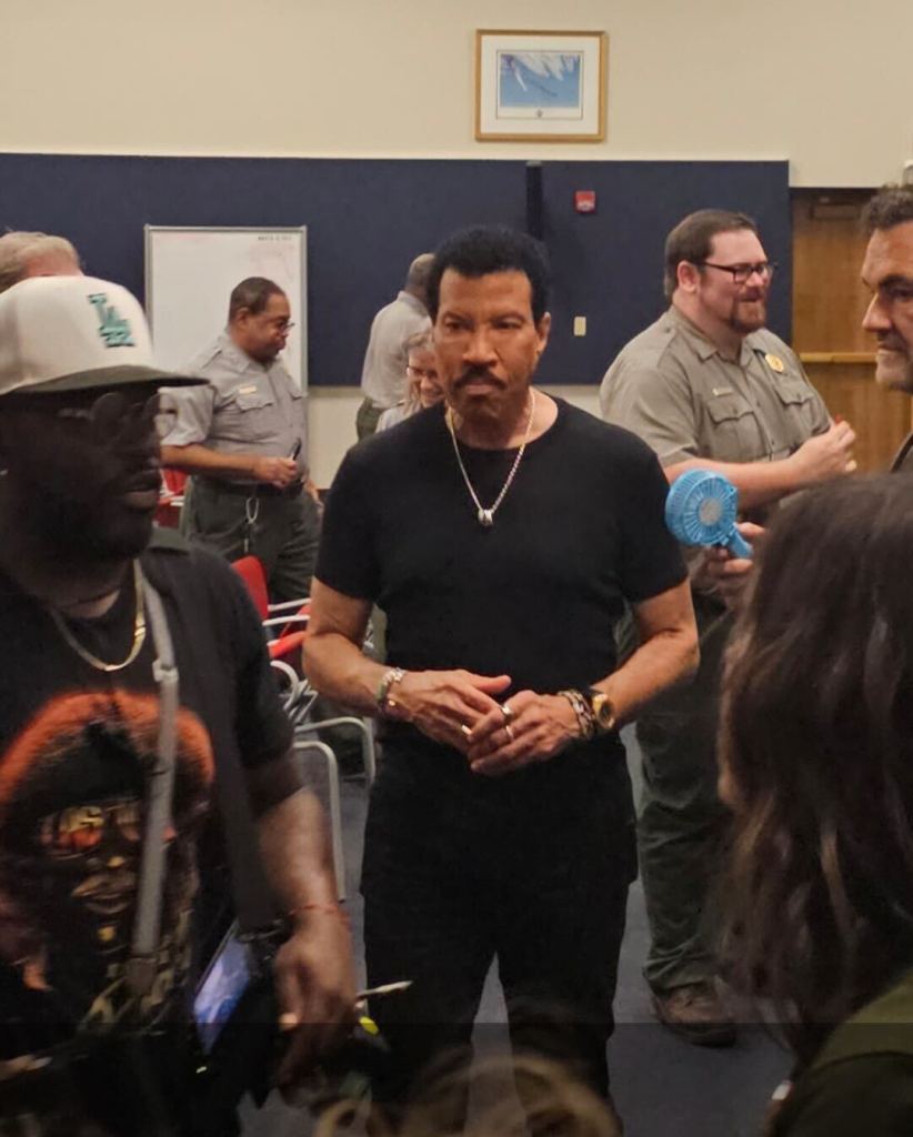 Richie made a stop at his alma mater on Monday as he was honored by his hometown with the dedication “Hello Park.” He also spent time on the campus, as he and his fellow American Idol judges were treated to a performance by the Marching Crimson Pipers, with whom they shared a few moments.