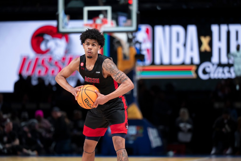 WSSU, as well as Virginia Union, was provided with special uniforms from Under Armour for Saturday’s HBCU Classic at NBA All-Star Weekend. WSSU’s black jersey featured a red patch with the name and number of Blunt, who starred for Big House Gaines from 1961 through 1965.