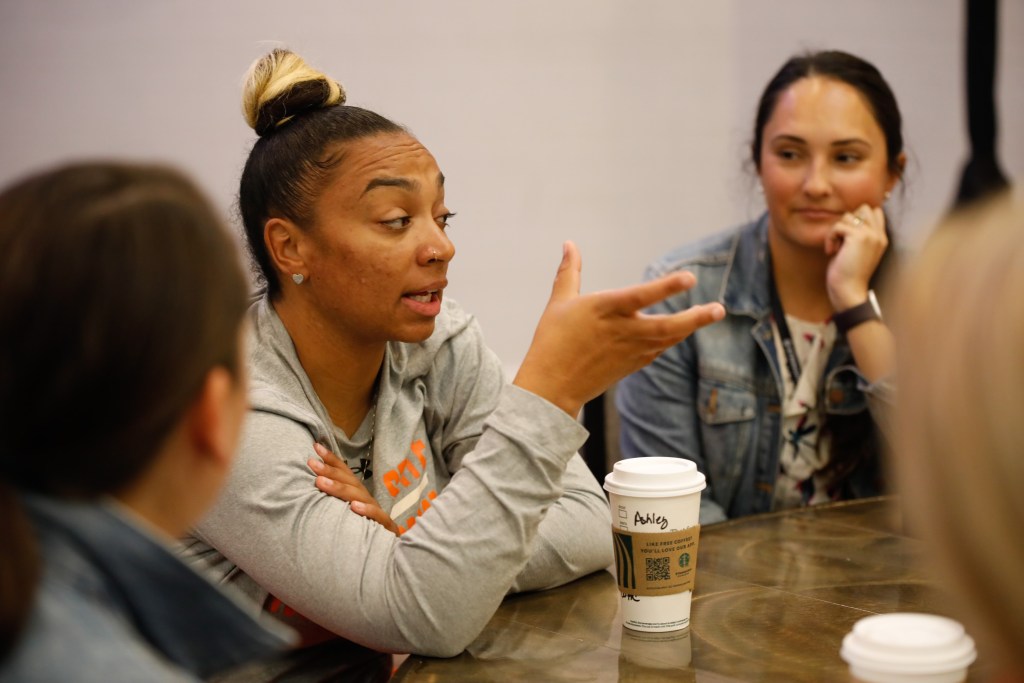 “The transition from high school to college – anything – is always so crazy and so chaotic and if you’re not ready or if you don’t know, then it’s always kind of like an uphill battle. So I think that that was one of the struggles that we had initially. but once the girls kind of got the flow and they kind of understood, like what those little pieces are, we’re still building that.