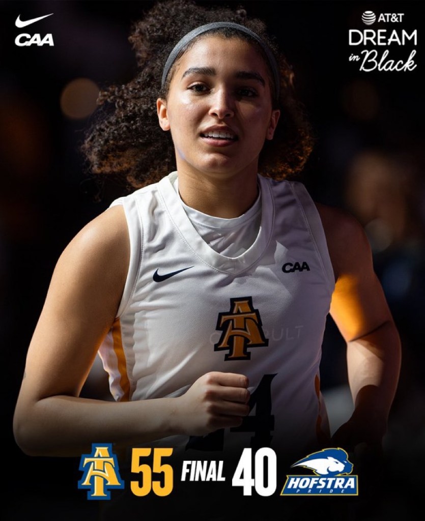 North Carolina A&T snapped Hofstra’s two-game win streak on Friday afternoon, handing it a 55-40 loss at Entertainment & Sports Arena in the CAA Tournament. The Pride went into halftime with a 24-18 lead, but were unable to hang on, as they were outscored by 21 points in the second half.