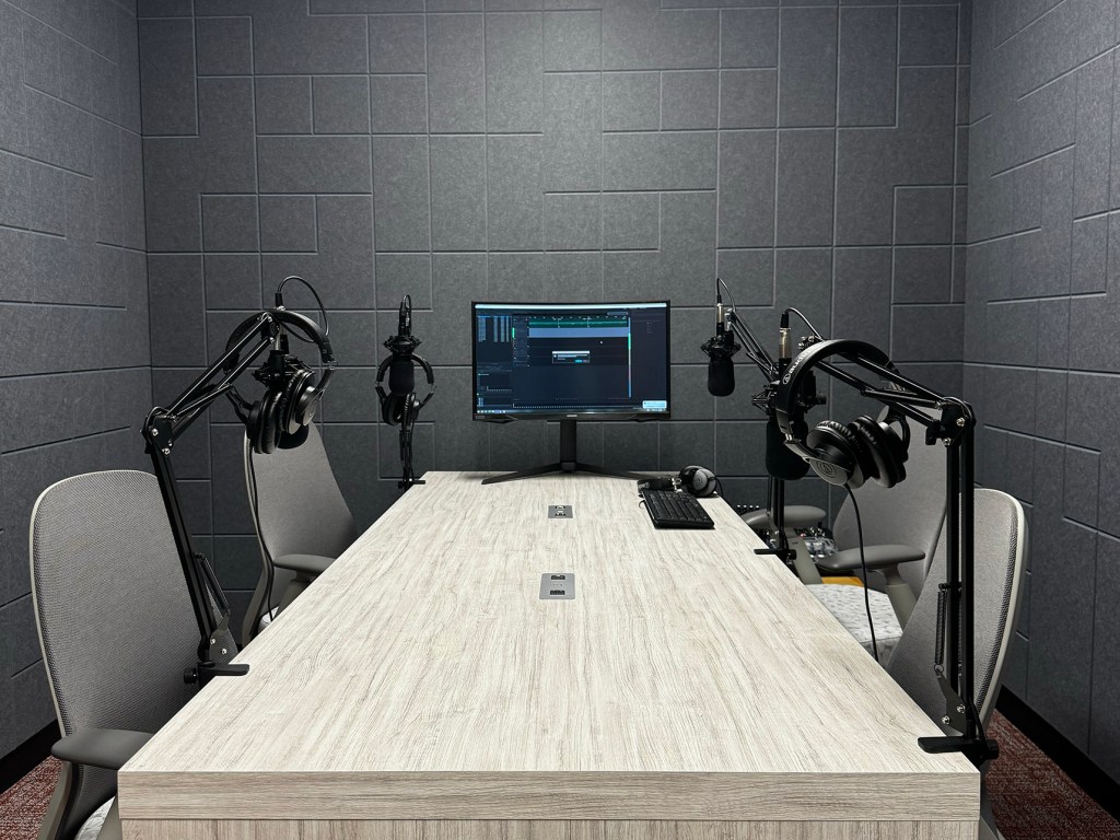 The Multimedia Lab is housed on the second floor of the O’Kelly Library at WSSU. The space consists of a podcasting studio with soundproof walls, a state-of-the-art video studio with an editing bay in the center of it. All are fully-loaded with Adobe software for the use of students, faculty, staff and alumni.