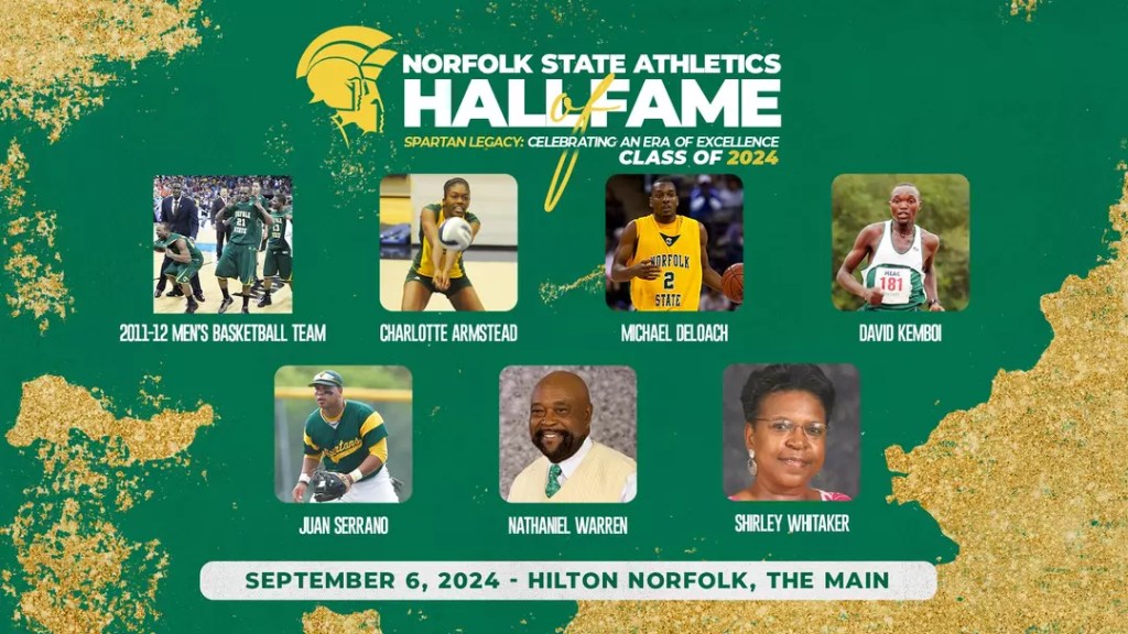 Charlotte Armstead (volleyball), Michael Deloach (men’s basketball), David Kemboi (cross country/track & field), Juan Serrano(baseball), Nat Warren (tennis), and Shirley Whitaker (administrator) make up the six individual members of the 2024 class. The 2011-12 championship-winning Norfolk State men’s basketball team also earned the recognition.