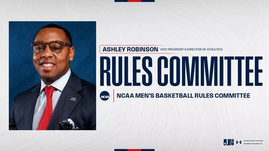 JACKSON, Miss. | Jackson State University Vice President and Director of Athletics Ashley Robinson has been selected to serve as a member of the NCAA Men’s Basketball Rules Committee, the organization announced.