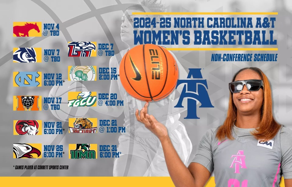GREENSBORO — After advancing to the Round of 16 at the 2024 Women’s National Invitational Tournament (WNIT) last season, the fun begins again for the North Carolina A&T women’s basketball program when they open the season in Dallas, Texas, on Monday, November 4 at Southern Methodist University (SMU). North Carolina A&T head women’s basketball coach Tarrell Robinson, who is entering his 13th season at the helm, announced the Aggies’ non-conference schedule on Thursday. It includes two ACC schools, including one of the newest members of the ACC, the SMU Mustangs. A&T also has three HBCU programs on the non-conference slate and a holiday tournament in Fort Myers, Fla., the hometown of incumbent starting center Chaniya Clark.