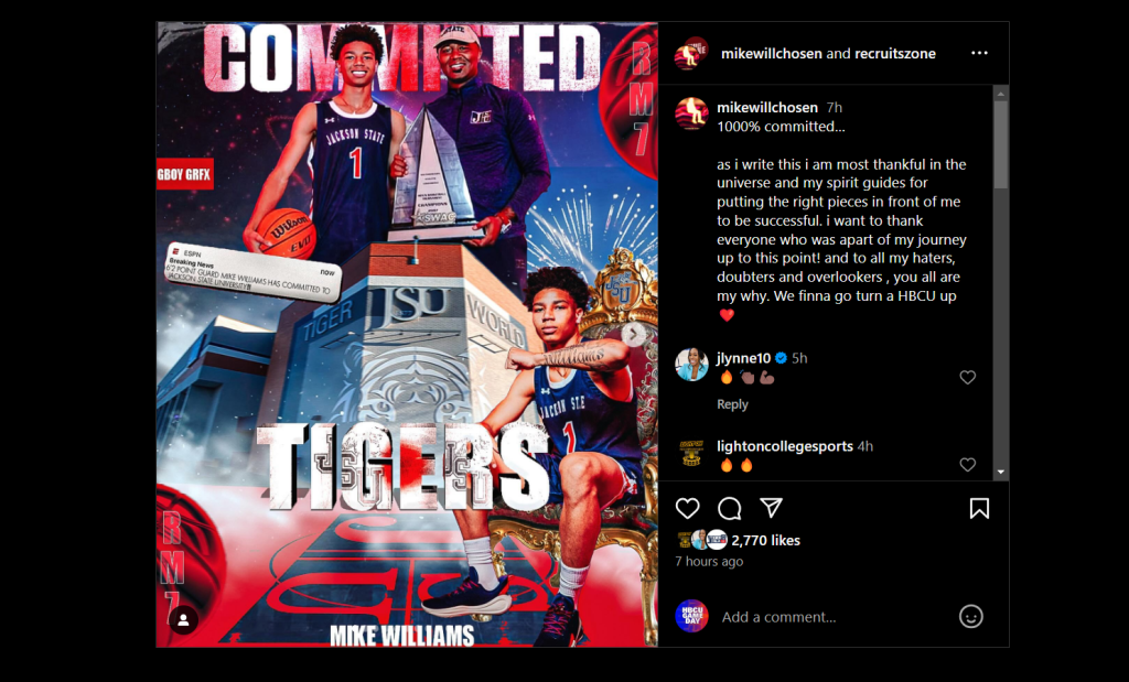 Mike Williams a stellar guard from the class of 2025 has committed to Jackson State to play for his father former NBA player, Mo Williams. According to his 24/7 Sports profile, Jackson State made its initial offer to Williams on April 9, 2022. The elder Williams was hired on March 14, 2022, marking his second HBCU head coaching job. He previously coached at Alabama State. Williams is ranked the No. 187 prospect in the 2025 class per 247Sports, giving him three-star status. Williams made the commitment announcement on his Instagram page.