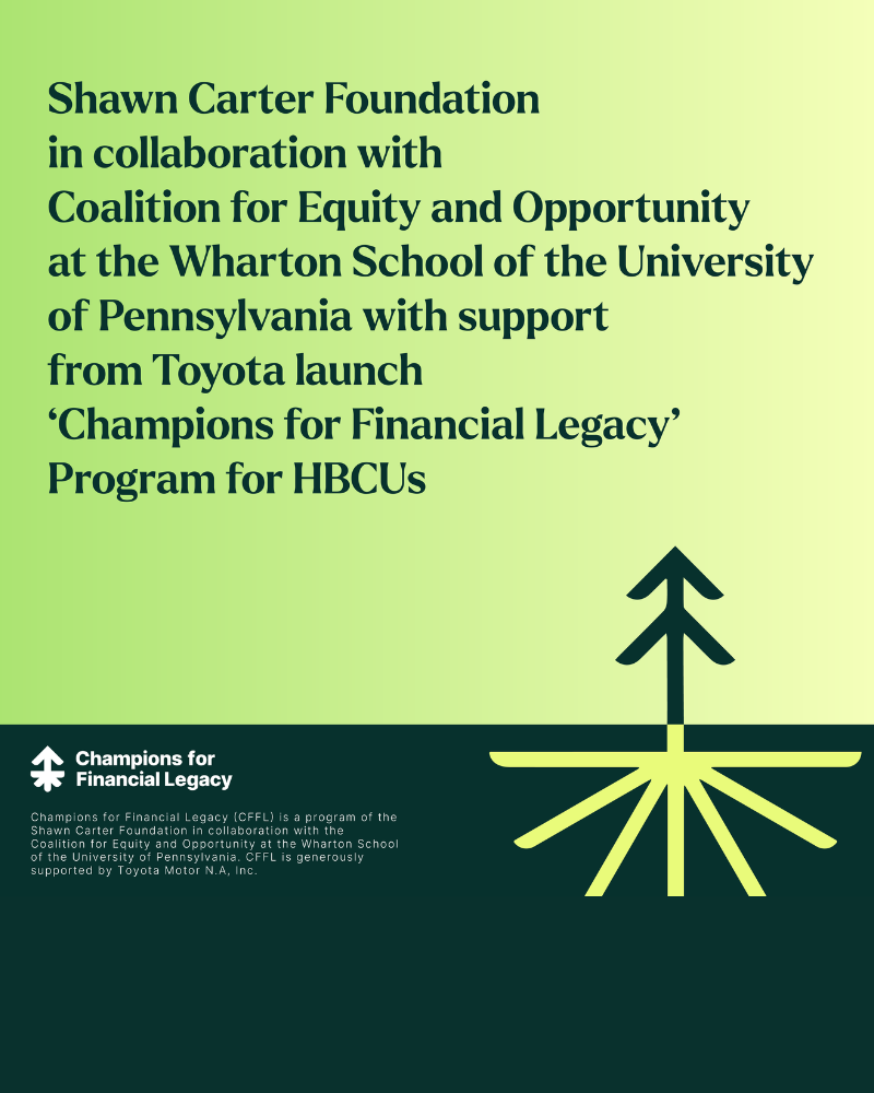 NEW YORK – The Shawn Carter Foundation, with generous support from Toyota Motor North America, is proud to introduce Champions for Financial Legacy (CFFL), a comprehensive financial education initiative designed to empower students at Historically Black Colleges and Universities (HBCU) and surrounding communities. The Shawn Carter Foundation, founded by hip-hop artist Jay-Z has been committed to bridging the opportunity gap that exists across the education system.