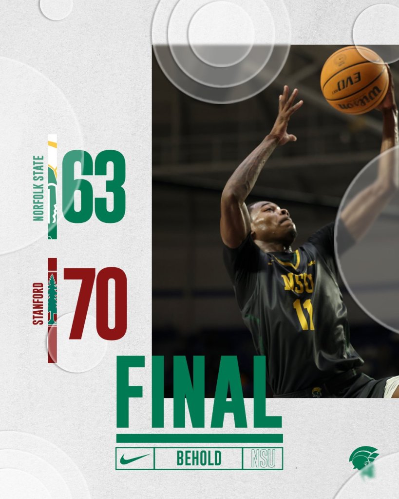 STANFORD, Calif. – HBCU Norfolk State put up an admirable effort against a strong road opponent but came up just a few plays short of an upset late Wednesday night against West Coast ACC opponent Stanford in a 70-63 defeat.