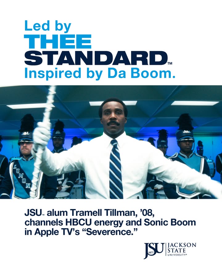 Tillman’s journey to Jackson State University began after transferring from Xavier University of Louisiana following Hurricane Katrina. He switched his major to mass communication and graduated summa cum laude in 2008. His time at JSU, surrounded by the excellence of the Sonic Boom of the South, became the foundation for the sequence featured in Severance’s finale.