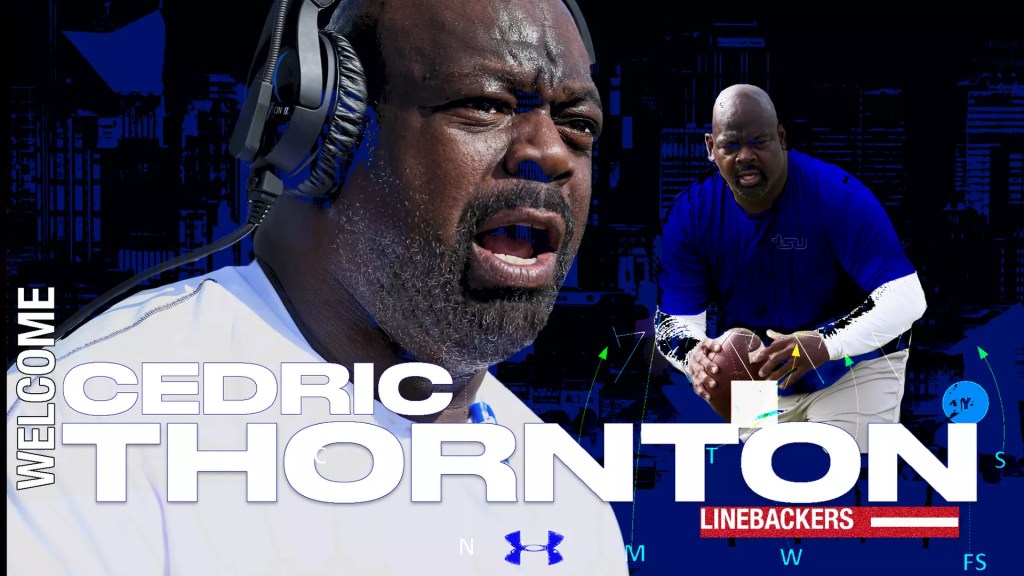 Thornton spent two seasons at Grambling State under former TSU offensive coordinator and head coach Hue Jackson, mentoring standout defensive end Sundiata Anderson, who earned numerous SWAC and national honors. He also coached freshman defensive lineman Keyshawn Johnson, a 2023 Stats Perform FCS Freshman All-American.