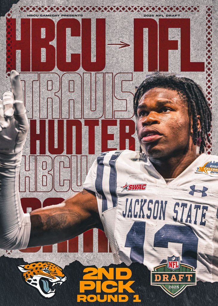 In a bold move that stunned the football world, the Jacksonville Jaguars traded up to the No. 2 overall pick in the 2025 NFL Draft to select electric two-way star Travis Hunter. The Jaguars made a deal with the Cleveland Browns, sending the No. 5 overall pick, a second-round pick, a fourth-round pick, and their 2026 first-rounder to secure the draft’s second selection. Before he dazzled scouts in the Pac-12 or became a household name on Saturdays, Hunter rewrote history by beginning his college career at an HBCU—Jackson State University.