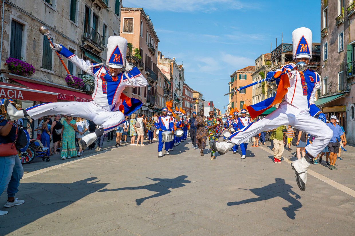 Complementing the architectural showcase, Morgan State’s renowned marching band, the Magnificent Marching Machine, brought their dynamic energy to Venice during Art Night Venezia on June 21, 2025. The band led a vibrant procession through the city, culminating in a performance at the Giardini della Marinaressa. This event featured a blend of music, spoken word, and traditional libation ceremonies, celebrating African heritage and the university’s commitment to cultural expression.
