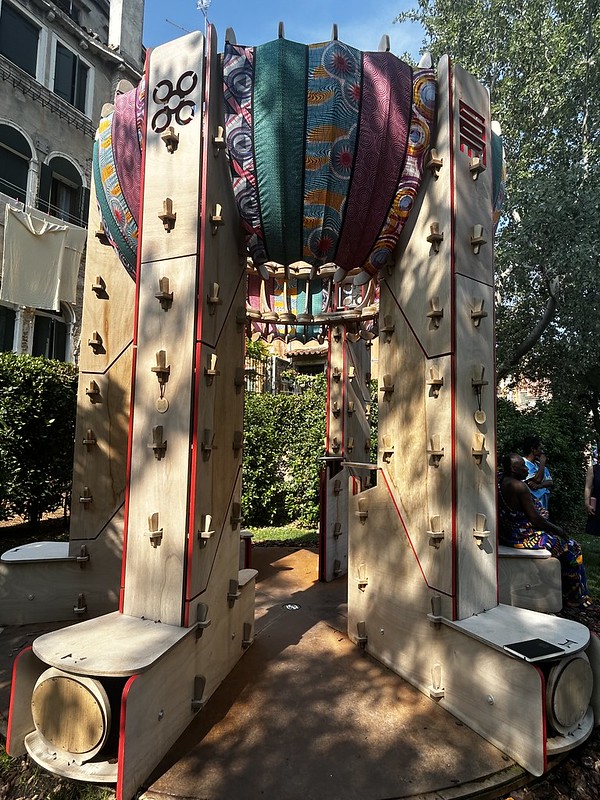 The pavilion, constructed with sustainably sourced timber, was a collaborative effort involving students and alumni from Morgan State University, Tuskegee University, and Clemson University. It opened on May 10, 2025, at the Giardini della Marinaressa in Venice and will be on display through November 24, 2025.