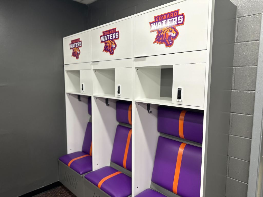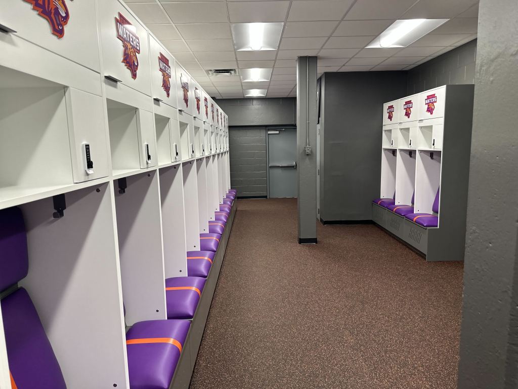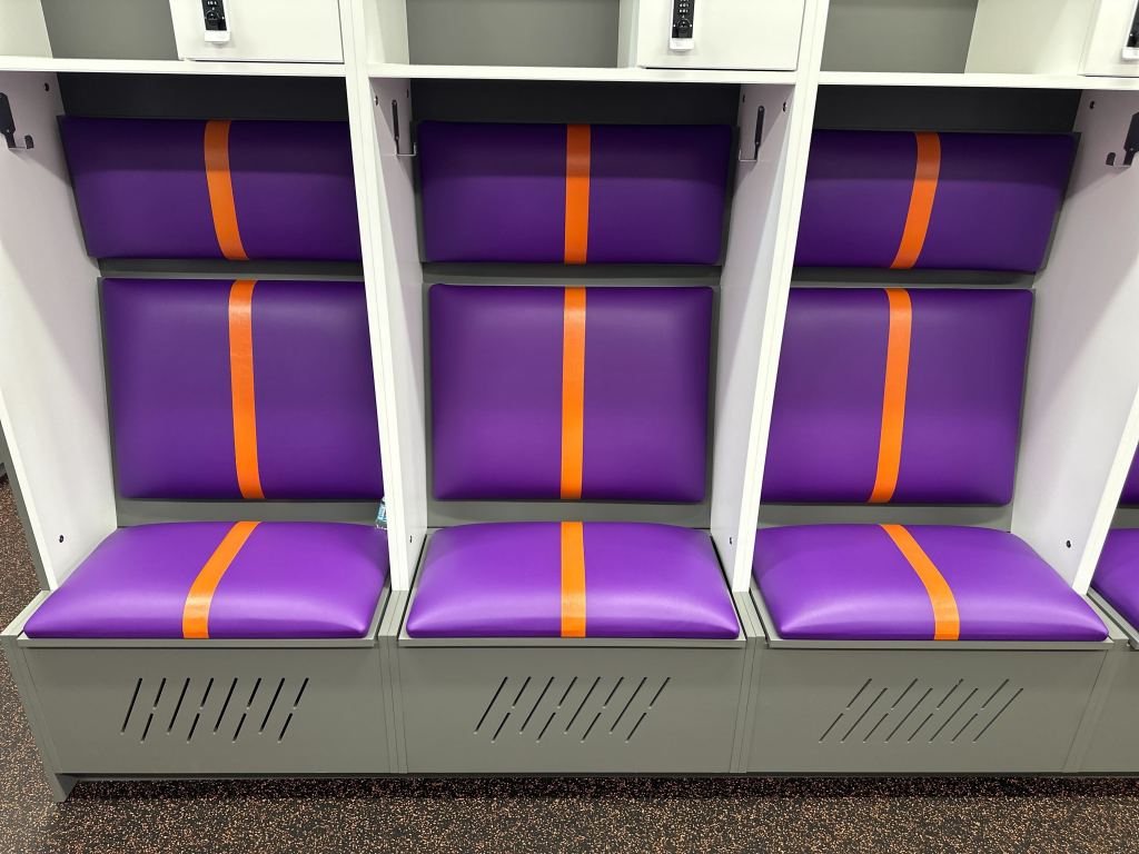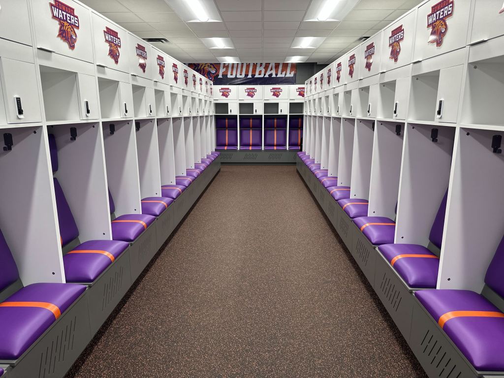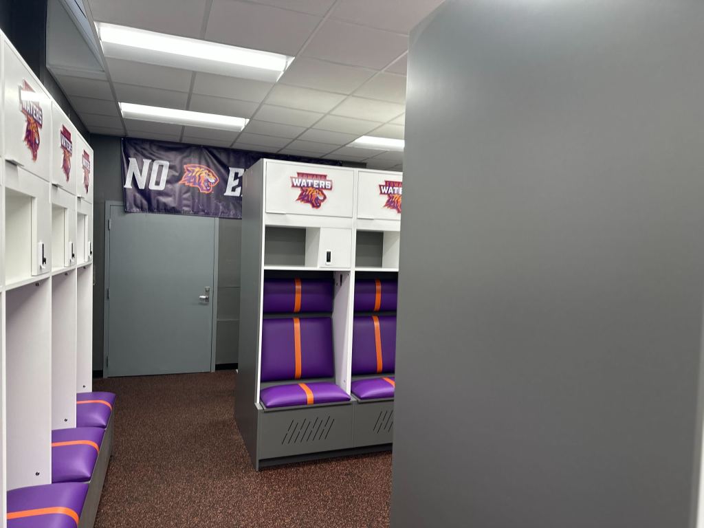 The final component of the athletic facility upgrades was unveiling a newly renovated locker room. Drenched in a vibrant purple and orange color scheme and adorned with the official Tiger logo, the space made an immediate impression on players, faculty, trustees, and supporters alike, who got their first look during a recent ribbon-cutting ceremony.