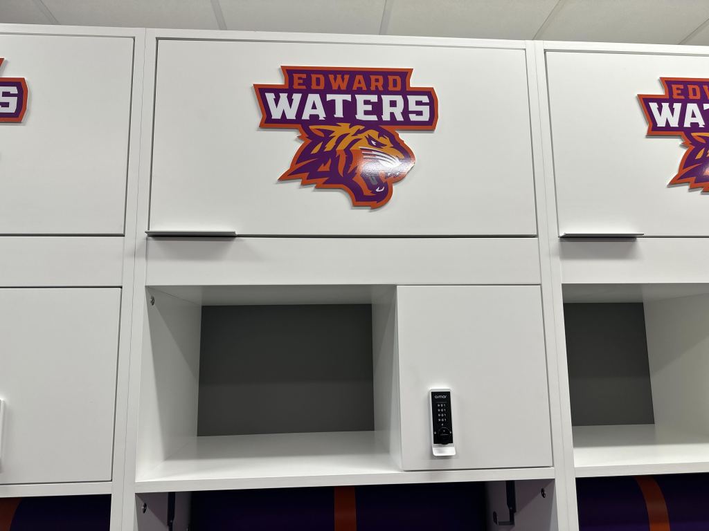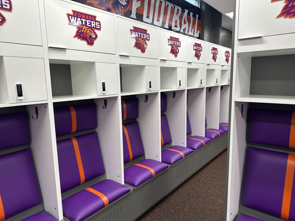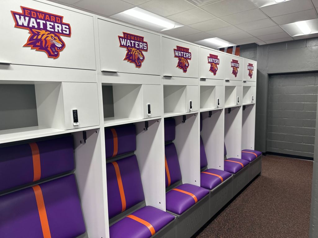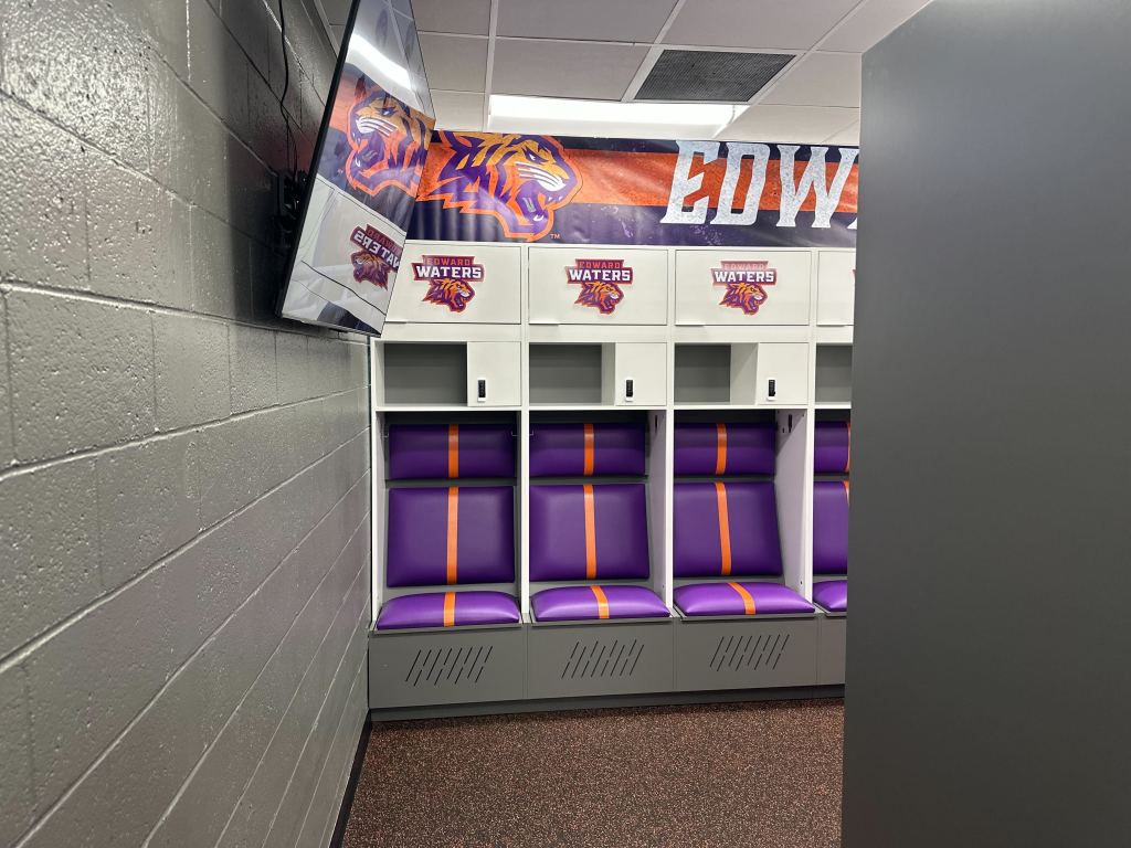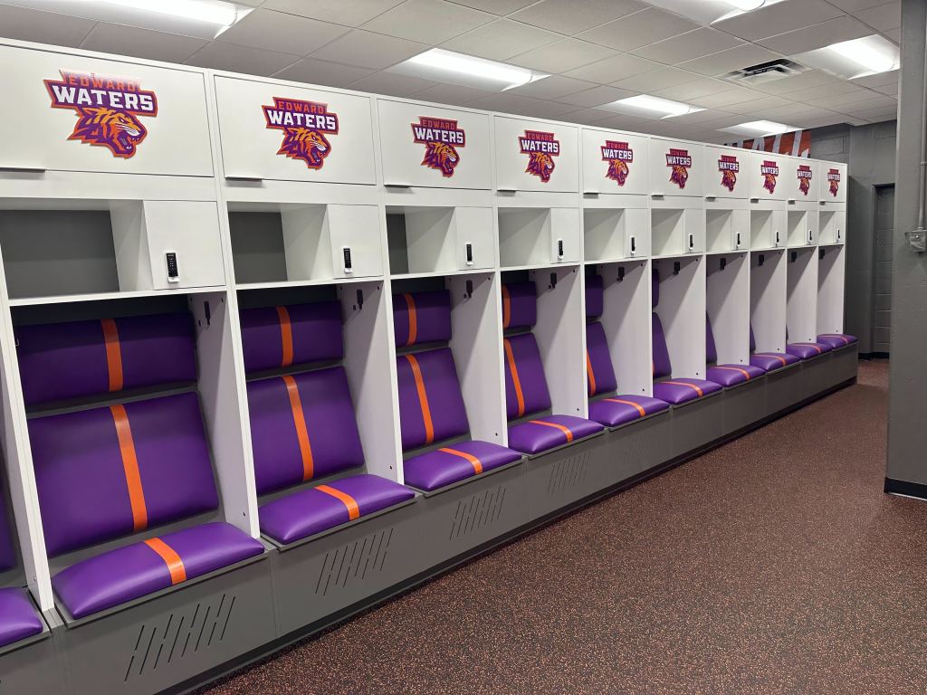 The final component of the athletic facility upgrades was unveiling a newly renovated locker room. Drenched in a vibrant purple and orange color scheme and adorned with the official Tiger logo, the space made an immediate impression on players, faculty, trustees, and supporters alike, who got their first look during a recent ribbon-cutting ceremony.