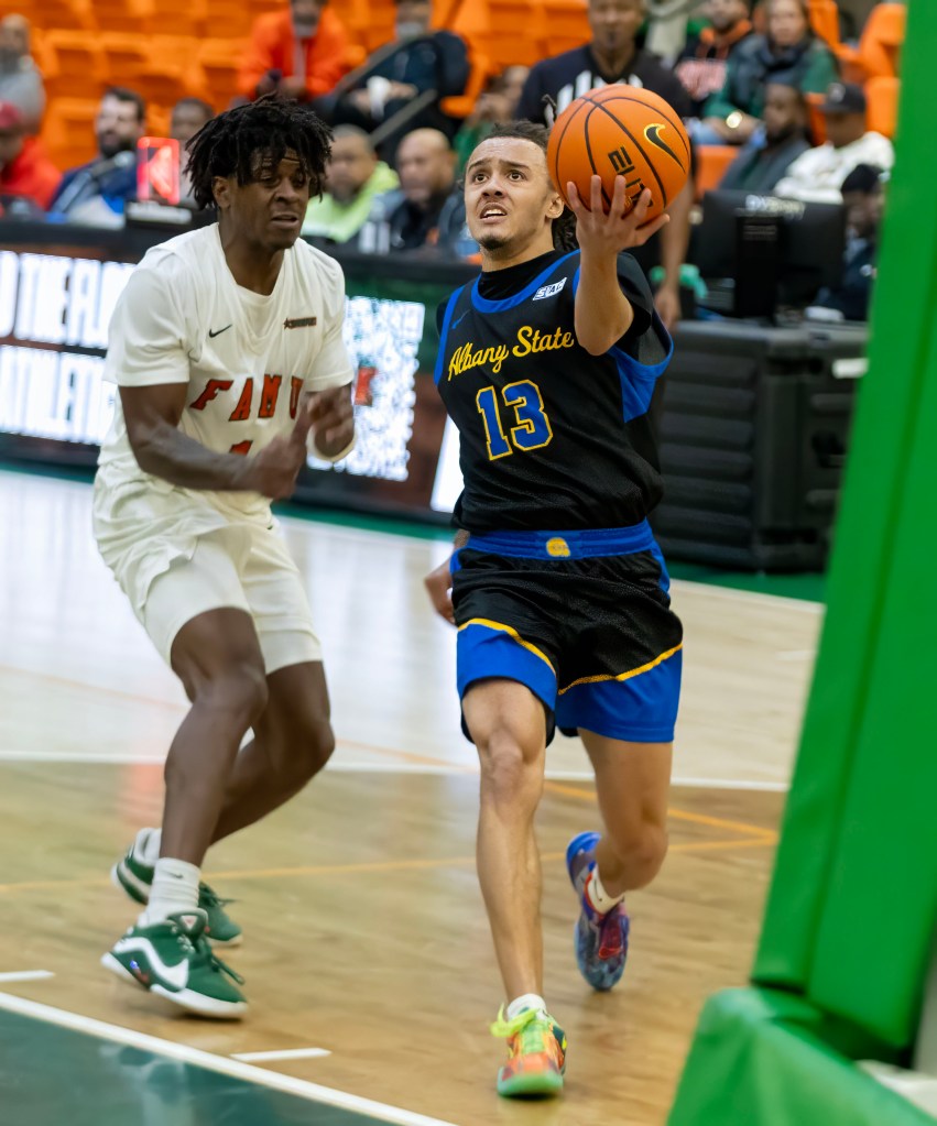 Florida A&M (FAMU) earned its first home win of the season as head coach Charlie Ward guided the Rattlers to a 93–77 victory over Albany State at the Lawson Center. The matchup was added late to the schedule following an earlier cancellation, with Albany State athletic director Dr. Kristene Kelly accommodating the request and making the 80-mile trip to Tallahassee during winter break.