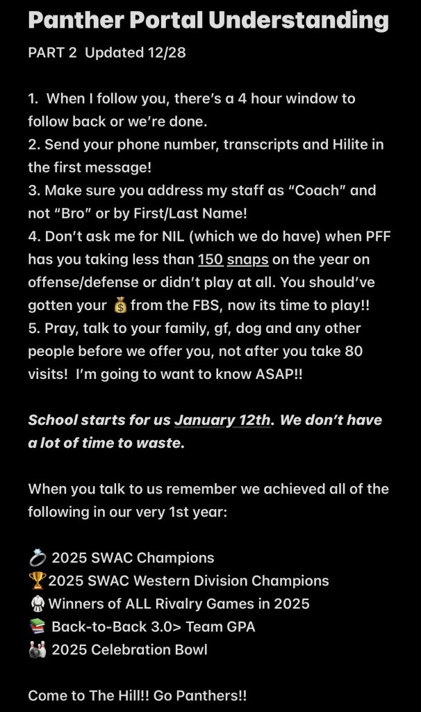 Whether players agree or not, the message is unmistakable. Prairie View A&M is recruiting culture as much as talent. In today’s transfer portal landscape, that stance alone was bound to go viral.